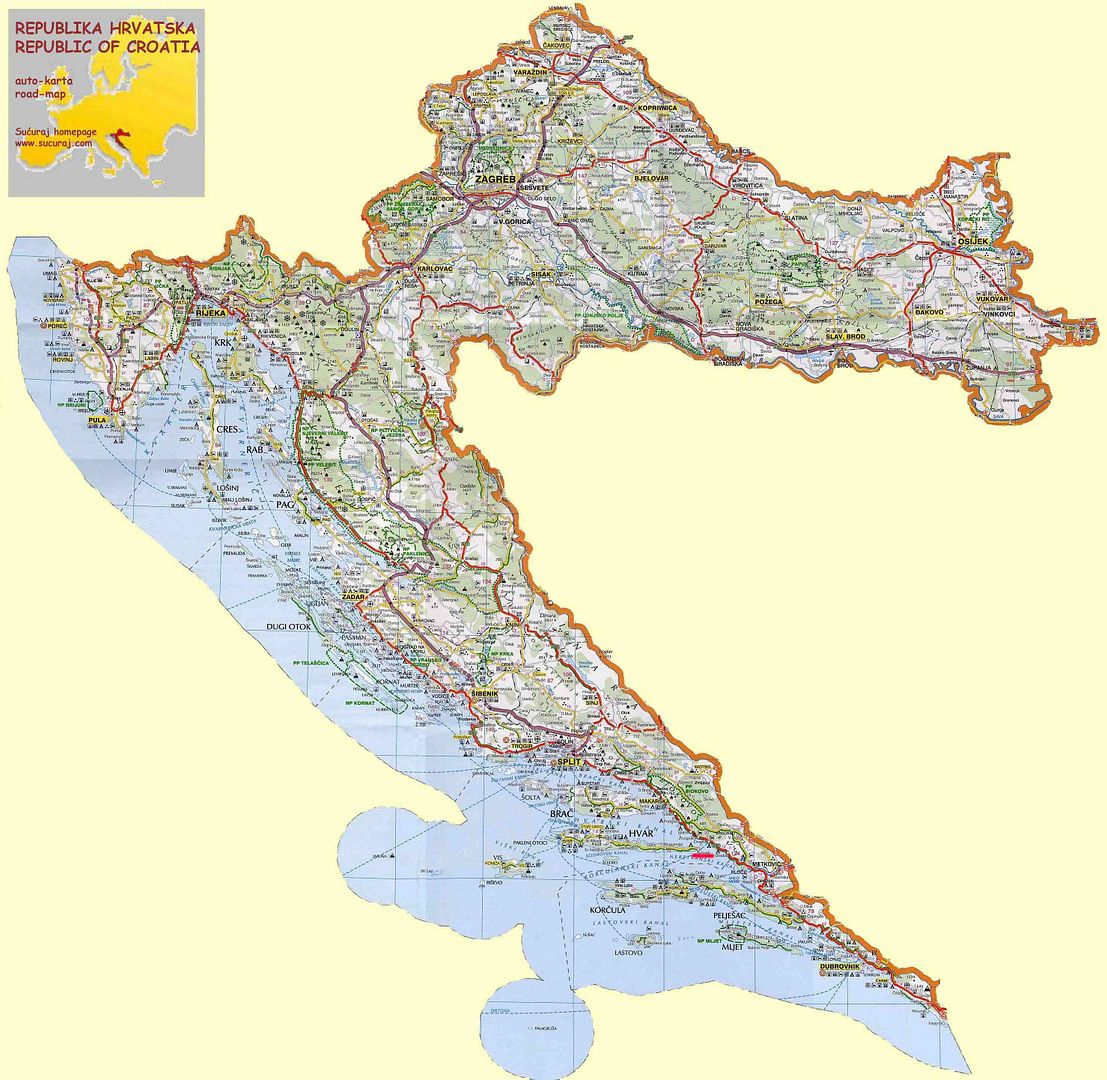 Croatia: este situata în nord-vestul Peninsulei Balcanice, pe tarmul Marii Adriatice si se invecineaza cu Ungaria la nord-est, cu Serbia la est, cu Bosnia și Herțegovina la sud-est, cu Muntenegru la sud-est, și cu Slovenia la nord-vest.